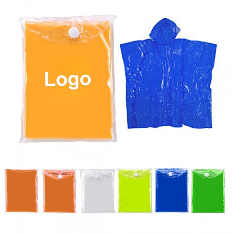 The pocket-sized snap pouch contains an adult, one-time-use hooded poncho.Take this poncho to any outdoor event as it provides quick protection from the elements. It comes in several vibrant colors and features its very own clear pouch which would showcase your custom logo or corporate brand.