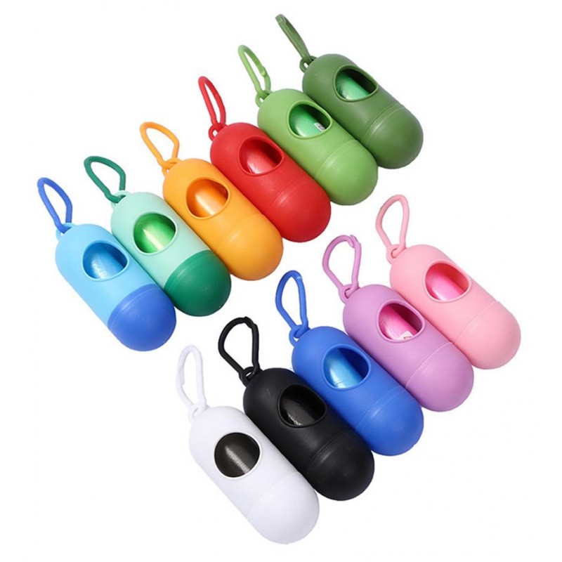 This dog bag dispenser is shaped like a bullet, Includes 25 disposable bags and can be refilled, you can groom your brand while picking up after man's best friend by using this bullet shaped dog bag dispenser.